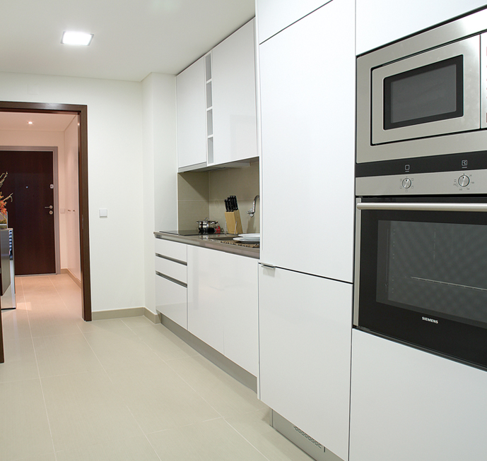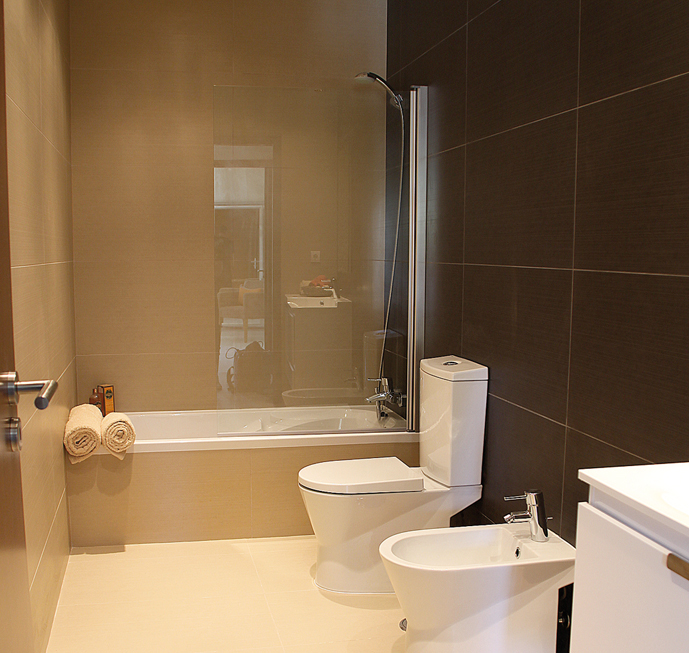 Апартаменты включают в себя гостиную, спальню, полностью оборудованную кухню и 2-3 санузла. Отделка ванных комнат сделана испанской плиткой SALONI, испанская сантехника, краны GROHE. На окнах в спальнях автоматические жалюзи.