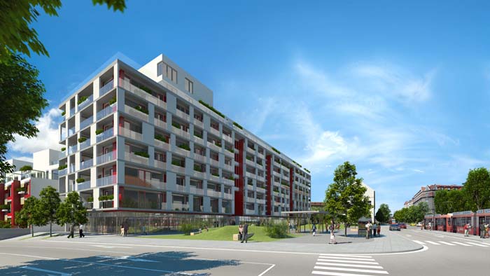 В современном 8-ми этажном жилом доме расположены 32 квартиры, площадью от 33 м.кв. до 90 м.кв. Некоторые квартиры имеют террасу, балкон и место для парковки в гараже. Цены квартир: от 125 300 до 313 600 евро...