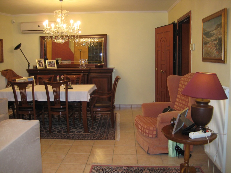 АФИНЫ р-он МОСХАТО ..Квартира на втором этаже 110 кв.м Угловой дом,3(три)балкона ,построен в 2002 году, 2 w/c автономный обогрев (газ природный) ,кондиционер,камин,железная дверь,солнечная батарея,навесы для защиты солнца (электрические), кухонны...