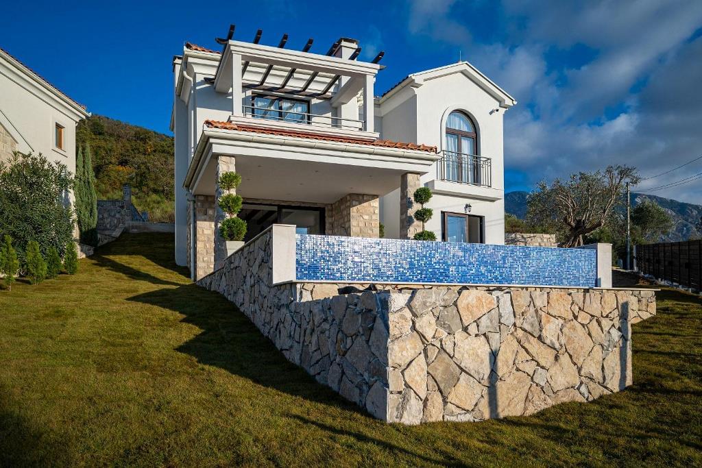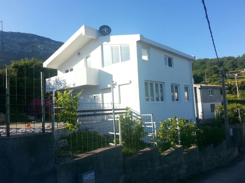 Современный высокотехнологичный новый дом с 4 спальнями находится в закрытом зеленом поселке в пригороде Тивата. Дом построен по немецкой технологии фахверк из современных материалов премиум-класса.