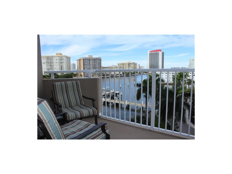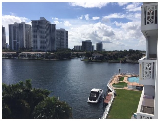 Квартира с панорамными видами на водные пути и город в Халландейле, Флорида, включает спальню, ванную комнату, улучшенную кухню, большую гостиную с обеденной зоной, гардеробную, балкон; жилой комплекс имеет бассейн и лодочную пристань, находится в ша...
