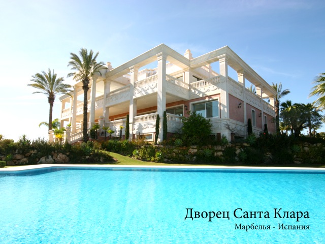 Дворец Санта Клара Место: Марбелья Урбанизация: Санта Клара Застроенная площадь: 2750 кв.м. Участок: 9000 кв.м. Кооличество спален: 6+3 для прислуги Виды: на море и поле для гольфа Орьентыция: Юг Паркинг: +20 мест Бассейн: внешний и внутренн...