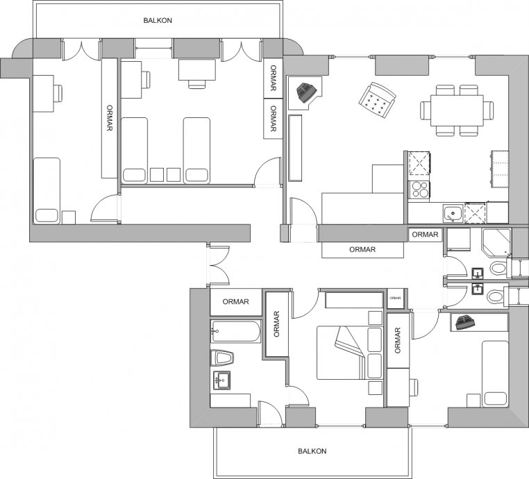 Квартира 83 m2 / Комнат: 3