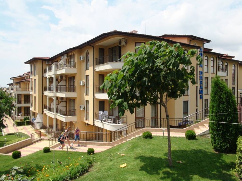 Комплекс "Аква Дриймс" это красивое и спокойное место между Солнечным Берегом и Святым Власом. Благодаря специфики своего местоположения "Аква Дриймс" редлагает уникальное сочетание вида на море и зеленых холмов вокруг. Располагается всего в 100 метрах от моря и в 800 метрах от Солнечного берега. Эта квартира имеет свой собственный балкон, ванную комнату и полностью оборудованную кухню с плитой, духовкой, тостером, холодильником, кухонной утварью и многим другим. Комплекс предлагает своим гостям 3 плавательных бассейна - бассейн для взрослых с детским сектором, другой бассейн для взрослых с коктейль-баром и детский отдельный бассейн круглой формы.