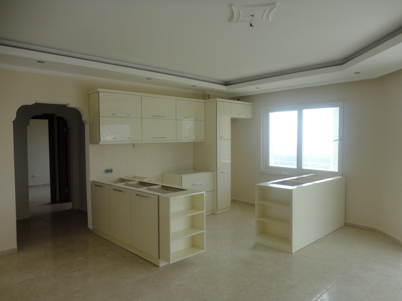 Аланья,Махмутлар,Центр просторная новая квартира 2+1-площадью 120 м2 стоимостью 46 000 евро в резиденции к вашим услугам-большой бассейн с детским отсеком парковая зона фитнес-салон охрана и консьерж. квртира с просторным салоном и очень качественно оборудованной встроенной кухней. 2 большие спальни и балкон с видом на море и горы.