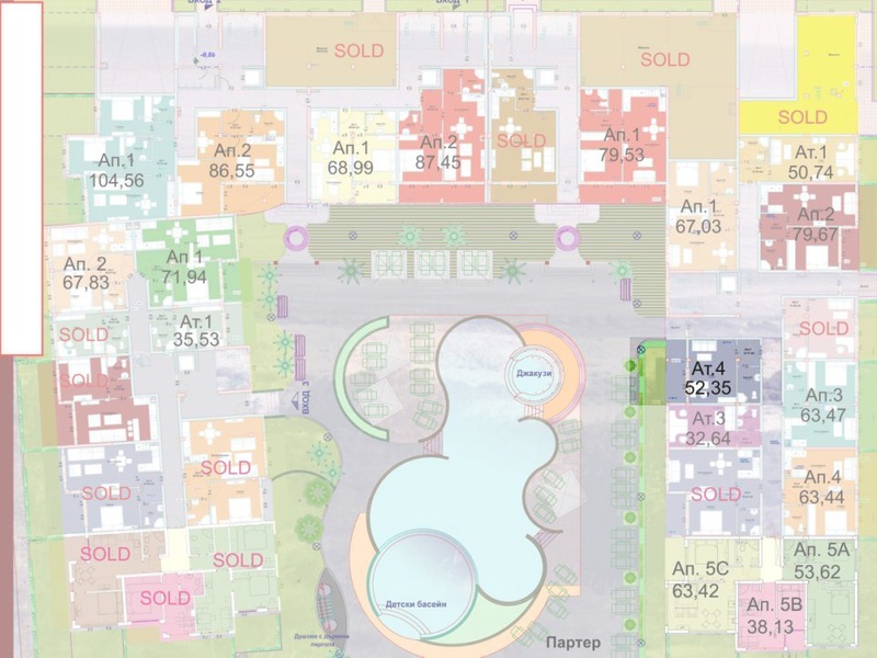 Комплекс состоит из двух зданий 32 и 34. Все апартаменты в комплексе „DIAMOND BEACH" предлагаются завершенными „под ключ", с установленными кондиционерами и отделкой естественным камнем.