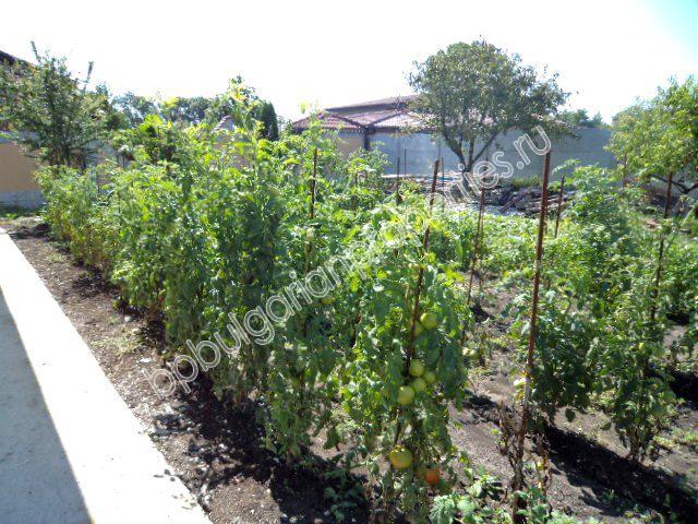 Участок земли, принадлежащей дому, имеет площадь 613 кв.м. На нем растет 10 фруктовых деревьев, помидоры, огурцы, а также и виноградник, который каждый год дает урожай.
