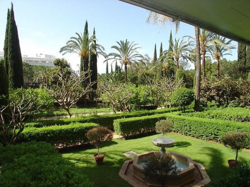 Просторный свтелый апартмент с современным интерьером, расположен на первом этаже комплекса «Дон Гонсало» на второй линии от моря в центре Марбельи. Терраса выходит в сад комплекса, с которой открывается вид на сад с фонтанами и красиво постриженными деревьями, напоминающими сады восточных дворцов Андалусии. 24 часовая охрана в комплексе и консьерж, подземная парковка, лифт, на територии сада 2 больших бассейна( детский и взрослый).