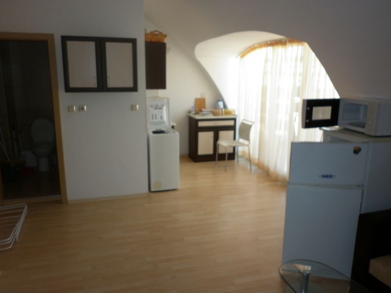К продаже предлагается небольшая квартира-студия в гостиничном комплексе „Stella Polaris 1” на Солнечном берегу. Жилье площадью 47 кв.м находится на 6-ом этаже. Представляет собой одну комнату, разделенную на кухонную и гостиную зоны. Также имеется ванная комната с туалетом и балкон с видом на море. Предлагается к продаже полностью меблированной и оборудованной. Кухня и ванная комната оснащены всем необходимым. Квартира подходит, как для сезонного отдыха, так и для круглогодичного проживания. Представляем Вам люксовый пятиэтажный жилищно-отельный комплекс "Стела Поларис 1", расположенный на "Солнечном берегу" болгарского Черномория и занимающий площадь 1 476 кв.м. Комплекс находится в южной части курорта напротив станции Министерского совета, в 200-х метрах от береговой линии. Застроенная площадь комплекса составляет 3 600 кв.м. Охрана - круглосуточна, есть лифт, приемная, центр для отдыха с бассейном и кафе-баром.