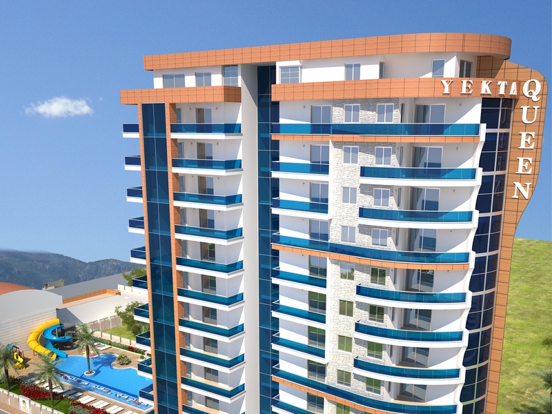 Yekta Queen Residence – уникальный жилой комплекс класс-люкс на 1 береговой линии с великолепными панорамными видами на Средиземное море. Его строительство началось в Декабре 2013 г. и сдан комплекс будет в  Мае 2015 г.  На этот комплекс можем сделать Вам беспроцентную рассрочку платежа до конца этапа строительства.Располагается жилой комплекс в развитом и экологически чистом районе Махмутлар г.Аланья. Сочетание горного прозрачного воздуха и  бескрайней глади лазурного Средиземного моря при отсутсвии суеты большого города является просто бесценным достоинством этого места.  Однако район современный и это значит, что вся городская инфраструктура – центральный променад, магазины, рестораны, парки, автобусные остановки и пр. – все это в шаговой доступности.         Наша компания позаботилась об уюте не только аппартаментов, но и всей прилегающей территории. Вы сможете насладиться СПА-процедурами ( 3 вида саун)  и расслабиться в открытом бассейне и в крытом бассейне с подогревом. Отдохуть и пообщаться с близкими и друзьями вы всегда сможете в беседках для отдыха, а Ваш глаз вокруг всегда будет радовать шикарный тропический сад , над высадкой которого будут работать лучшие ландшафтные дизайнеры нашего холдинга. Дети смогут порезвиться на водных горках или детской площадке. Для владельцев автомобилей будет создан подземный паркинг. Мы заботимся о Вашем спокойствии, поэтому по территории комплекса и в доме будет установлено видеонаблюдение. Для удобства на территории комплекса будет зона бесплатного Wı-Fı интернета и будет установлено спутниковое телевидение Три-колор. У комплекса будет своя береговая линия с пирсом!  Все квартиры сдаются с высококачественной чистовой отделкой и частичной мебелью.