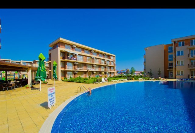 Комплекс находится на курорте Солнечный Берег напротив самого большого аквапарка, всего в 800м от лучшего пляжа на побережье. До центра курорта менее 500 метров.