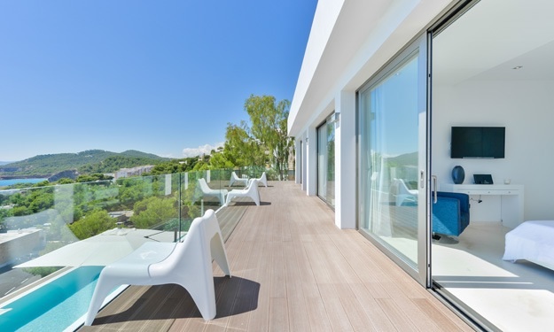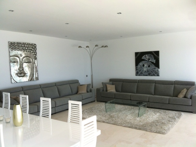 Hовый роскошный дом, расположенный в Roca Льиса с 24-часовая охрана, рядом с полем для гольфа с захватывающим видом на море.Всего 10 мин езды до Марина Ботафоч и города Ибица. 3 мин езды до пляжа Кала Лонга. Вилла полностью отремонтированф и обставленф по самым высоким стандартам.