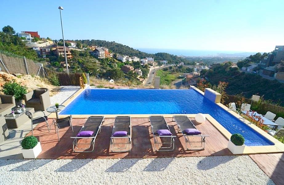 В жилом районе Квинт Мар в близости от центра города и пляжей Ситжес, этот дом современного дизайна , яркий и просторный. Из любого места в доме имеет прекрасный вид на море. Состоит из большой гостиной с выходом на террасу, кухня очень современный дизайн, три спальни с ванными комнатами, кабинет и обустроенная мансарда. В саду есть бассейн, терраса с непревзойденным видом на море.