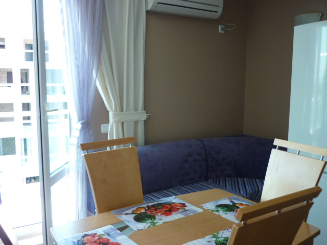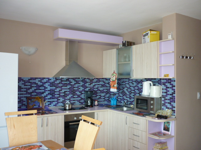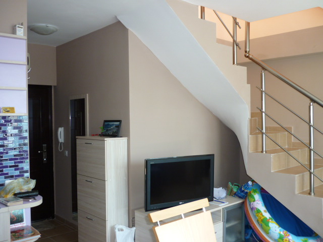 Трехкомнатный апартамент на продажу в городе Поморие, в комплексе под названием „Европа“. Двухуровневый апартамент с фронтальным видом на море имеет общую площадь- 92.67 кв.м., жилая площадь – 65 кв.м., балкон – 20 кв.м. Апартамент расположен на четвертом этаже и имеет шикарную морскую панораму. Планировка квартиры включает в себя 2 спальные комнаты, 2 ванные комнаты с туалетом, гостиная с кухонным углом, с мебелью. Квартира продается полностью обставленной и оборудованной. На первом этаже: прихожая, гостиная с кухонным углом, спальная комната, санузел, балкон. На втором уровне: спальная комната, балкон – 13 кв.м. На балконе раздвижной есть навес. На территории комплекса есть бассейн, такса поддержка 191 евро в год.
