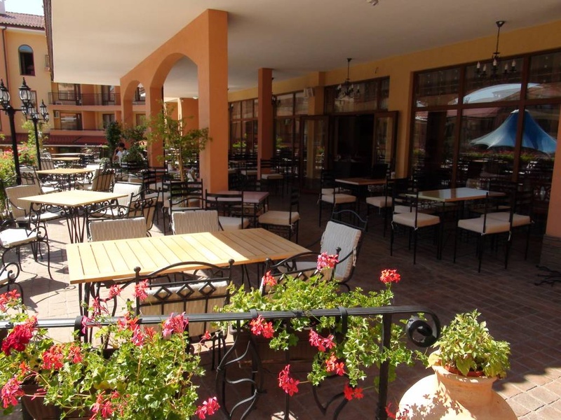 На территории комплекса: 2 бассейна с детскими отделениями, теннисный корт, 2 ресторана, ресепшн, магазин, парковка, отлично ухоженные газоны.