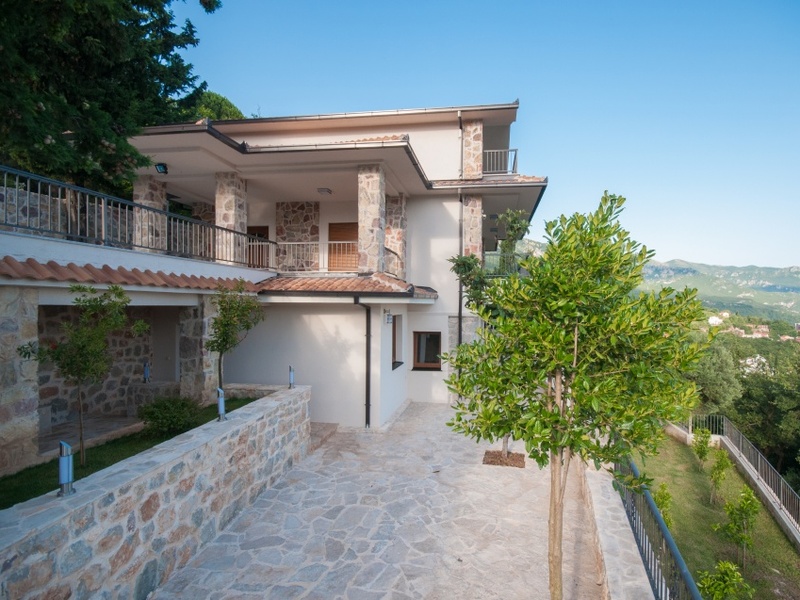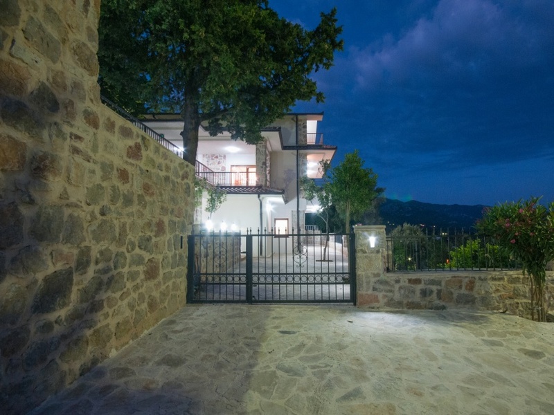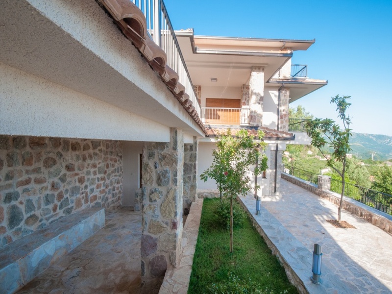 Дом состоит из двух отдельных частей, связанных снаружи общим садом. Со всех террас и из каждой комнаты открывается чудесный вид на море. Площадь дома составляет 300 кв. м., площадь участка – 500 кв. м. Дом расположен в 6 км от моря и на высоте 350 м над уровнем моря.