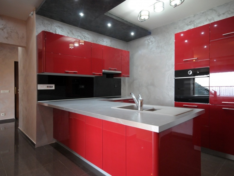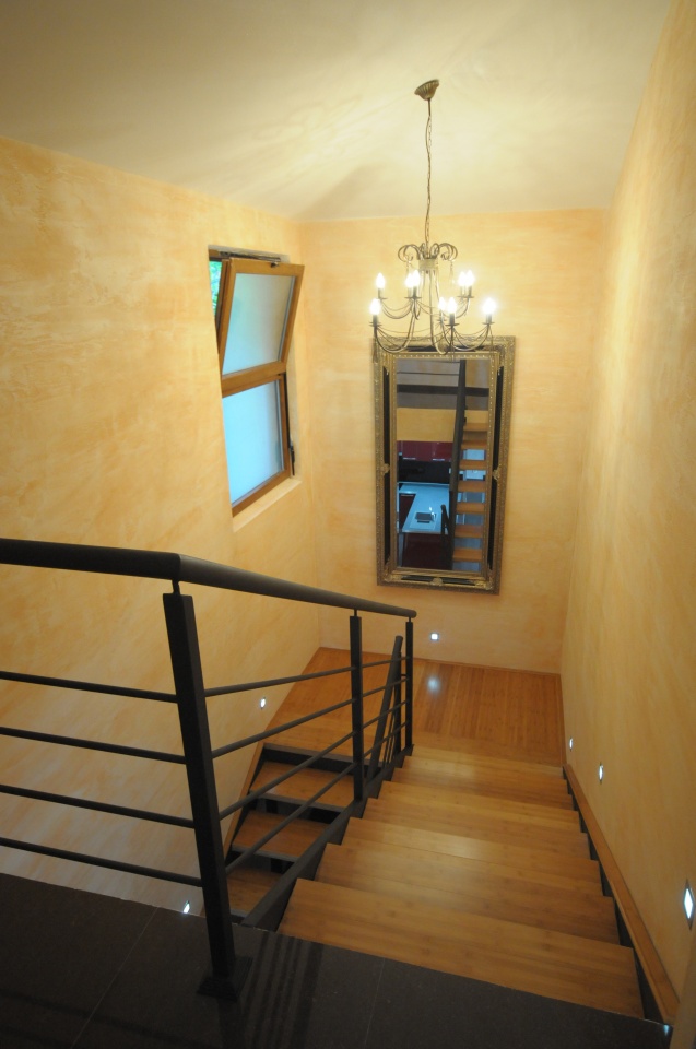 Стены и потолки отделаны высококачественными материалами, такими как: уникальным полихромным покрытием Полистоф, декоративной штукатуркой TRAVERTINO ROMANO и венецианской декоративной краской SABULADORE.