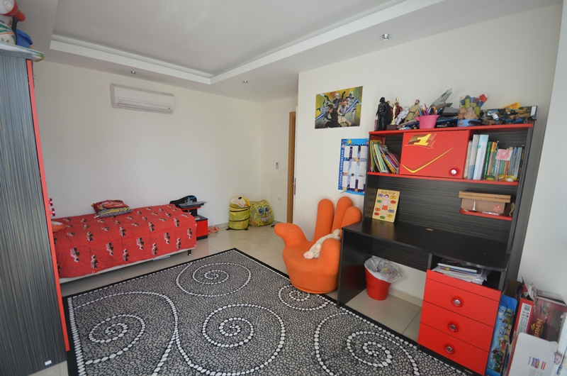 Квартира 3+1, на первом высоком этаже в блоке С, имеет огромную террасу в 20 кв.м. с южной стороны квартиры с видом на бассейн и внутреннюю территорию комплекса, и просторный балкон с выходом из спальни с северной стороны. В квартире собственником был сделан подогрев полов по всей квартире, установлены кондиционеры в каждой комнате, бытовая техника. В квартире 2 ванные комнаты в одной, в одной из которых установлено джакузи. Возможно покупка квартиры вместе с мебелью. На территории комплекса круглосуточная охрана, офис управляющего, салон красоты, фитнес и спа центры, зимний обогреваемый бассейн, 2 открытых огромных бассейна, детский бассейн, аквапарк, открытая и закрытая парковки, боулинг, ресторан, кафе, детская комната и детская игровая площадка, зона Play station, большой теннис и баскетбольная площадка, настольный теннис и бильярд, конференц зал и кинотеатр. Ежемесячное обслуживание квартиры 45 евро. В пешей доспупности находятся крупные торговые центры: Аланиум, Метро, Кипа и др. Расстояние до моря 600 метров.