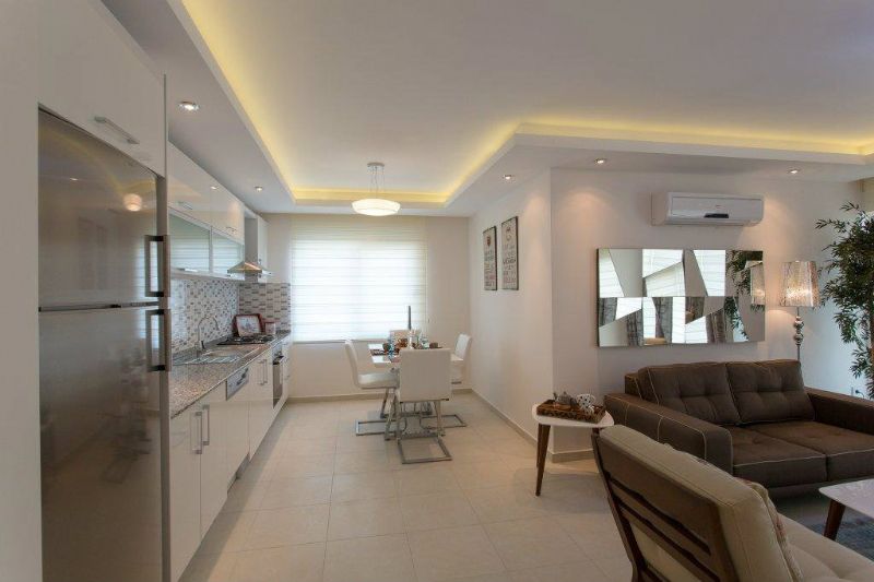 Продается новая двухкомнатная квартира в Алании в районе Авсаллар, в элитном комплексе по внутренней инфраструктуре не уступает пятизвездочному отелю. Комплекс находится всего в 600 метрах от песчаного пляжа. Пляжи Авсаллара отличаются песчаным пологим входом в море и красивейшими бухтами. Рядом с комплексом располагается выездной базар по субботам, магазины, рестораны, автобусная остановка и прочее. Комплекс окружен горами и зеленью. Квартира 1+1, представляет собой просторную гостиную совмещенную с кухней, спальню, ванную и балкон-террасу, об. площадью 57 кв.м.,на 3 этаже, с видом на горы с северо-западной стороны.