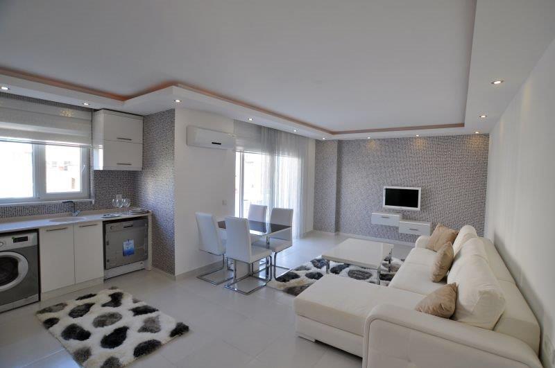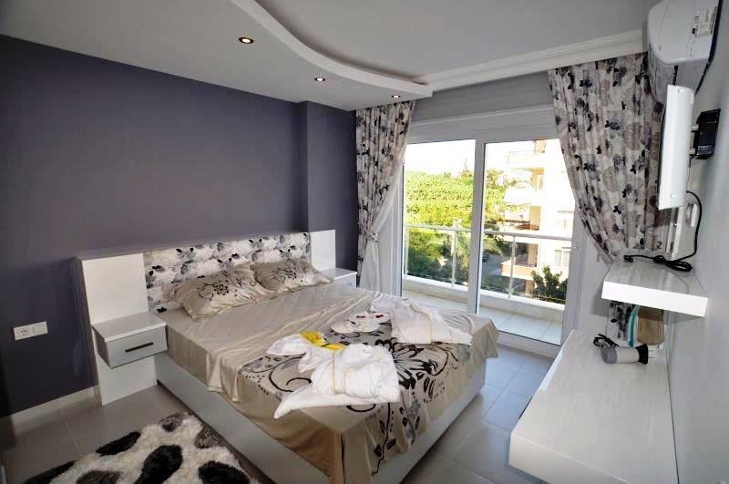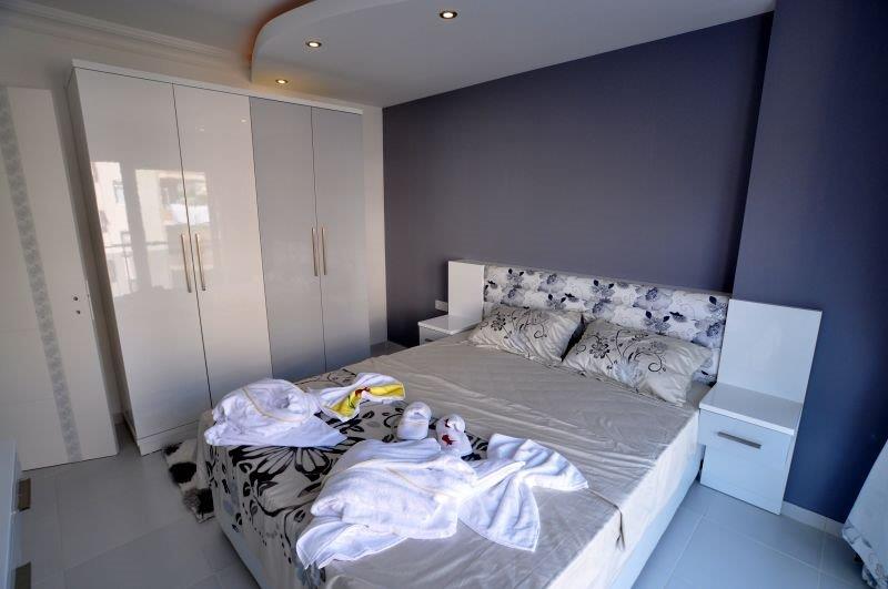 Квартира с одной спальней, об. площадью 59 кв.м, располагается на 4 этаже с юго-западной стороны, с видом на море. В квартире хорошая внутренняя отделка, большой балкон, гостиная совмещенная с кухней, отдельная спальня и ванная комната. На кухне установлена встроенная мебель, гранитная столешница, глянцевые панели, проведена сантехника, на полу керамическая плитка, стены окрашены краской на водной основе, пластиковый окна с двойным стеклом, видеодомофон, душевая кабина в ванной и др. Сама резиденция находится в самом центре Махмутлара, в 400 метрах от моря, в пешей доступности рынок, магазины, автобусная остановка. На территории резиденции для жителей предусмотрен бассейн, сауна и тренажерный зал, на крыше сделана зона отдыха с шезлонгами и зонтиками, мини-бар, джакузи, настольный теннис и др. Круглосуточно работает консьерж.