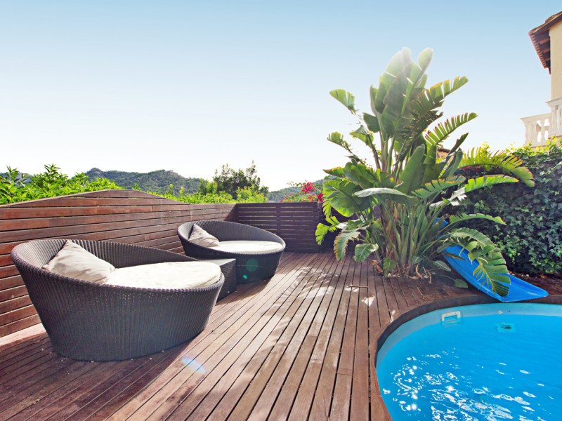 Вилла класса люкс в урбанизации "Альдеа Гольф де Мар", в очень хорошем жилом районе Камп де Мар с домами в средиземноморском стиле. Он расположен недалеко от поля для гольфа и пляжа, а центр населенного пункта находится в нескольких минутах ходьбы. На первом этаже этого трехэтажного дома спроектированы гостевая квартира и частный бассейн с зоной отдыха. Второй этаж предлагает просторную гостиную с видом на горы, кухню и туалет для гостей. Третий этаж распределен на 3 спальни и 3 ванные комнаты. Из всех окон спальных комнат открываются неповторимые панорамные виды.