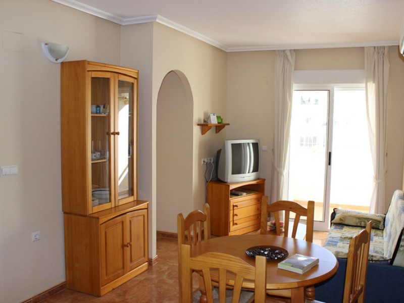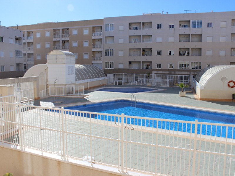 На продажу выставлена недорогая и в то же время отличная квартира в курортном городке на побережье Испании. Комплекс апартаментов расположен недалеко от центра Торревьехи и в пешей доступности от всей необходимой инфраструктуры. В 15 минутах ходьбы находятся такие крупные супермаркеты как "Mercadona"(испанская марка), "Carryfour"(французская марка), ТЦ "Habaneras", а по пятницам недалеко проходит городской рынок, где всегда можно купить свежие местные фрукты и овощи. Расстояние до моря составляет 800 м, а до аэропорта - 43 км.
