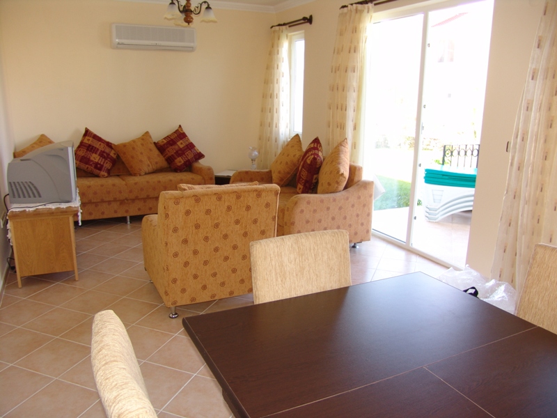 2-х спальный и 2-х этажный апартамент с садом возле бассейна. Аренда жилья в Фетхие, в районе Олюдениз. Только 600 метров до центра Хисарёню. Идеальный вариант аренда апартаментов в Фетхие в уютном комплексе. Красивое жилье в аренду в Фетхие Олюдениз имеет большую террасу с барбекю. Турция, Средиземное море, Фетхие, Олюдениз, Оваджик, Комплекс Pinara (Пынара). Дуплекс апартамент на 2 уровня (1-ый этаж и 2-ой этаж)2 спальниКомфортный проживание на 5 человек (1 двуспальная и 2 односпальных кровати и 1 диван-кровать)1 ваннаяКухня, гостинаяТерраса у выхода на сад, балконыОбщий бассейн и детский бассейн (в комплексе)Апартамент с видом на бассейн (напротив бассейна)Небольшой вид на море c балконов.