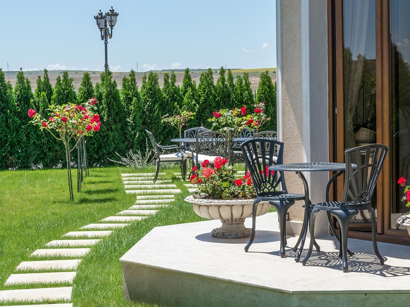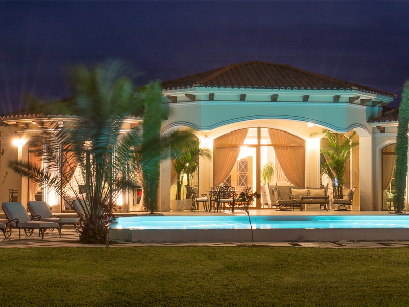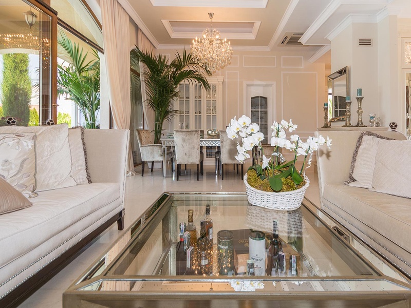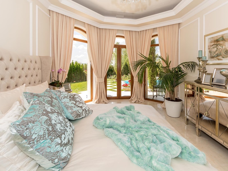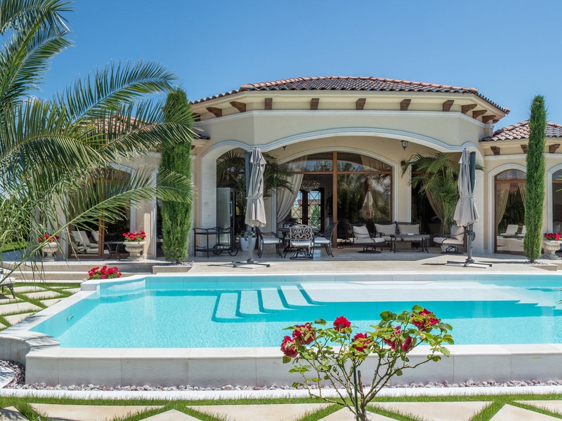 Внушительным входом дом вас встречает в просторной гостиной. Пространство гостиной и кухни решено в схеме «open space» с обособленными уголками для столовой, отдыха, развлечения и камина. К западу гостиная открывается в сторону веранды через широкие витрины. Веранда покрыта импозантным козырьком, под которым оформляется уникальное переходное пространство между гостиной и садом, подходящее для официальных ужинов и изысканных торжеств. Дом располагает тремя двухместными спальными комнатами. У двух из них есть общая ванная, и спальная комната для родителей с самостоятельной ванной и помещением под платяной шкаф. При кухне есть просторное подсобное помещение, через которое можно дойти до большого гаража на одну машину. Дом обставлен исключительно элегантно полностью индивидуально изготовленной мебелью. В интерьере использованы изысканные естественные материалы, естественный известняк, дерево. Гостиная и две из спальных комнат смотрят во внутренний сад дома и на бассейн. Из веранды непосредственно можно войти в большой бассейн, расположенный в центре сада и облицованный полностью естественным известняком. Сад богато озеленен экзотическими деревьями и цветами с обособленными уголками для шезлонгов возле бассейна и беседки