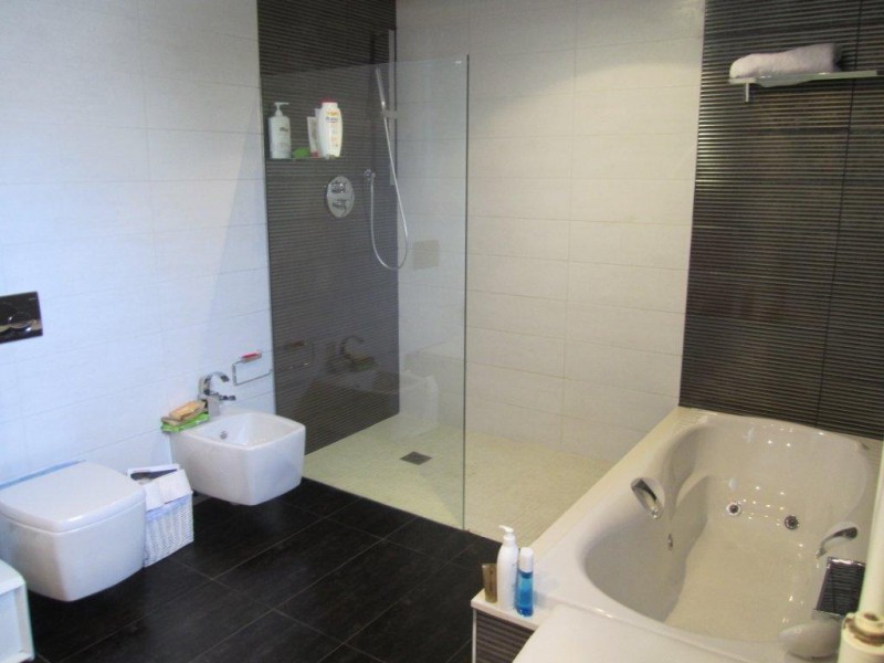Вилла состоит из пяти спальных и шести ванных комнат, отдельной, полностью оборудованной мебелью и техникой, кухни, просторного и светлого салона, нескольких террас. Дом обустроен дизайнерской мебелью, установлена система кондиционирования воздуха, оконные роллеты, полы из натурального дерева и мрамора. В саду система автоматического полива.