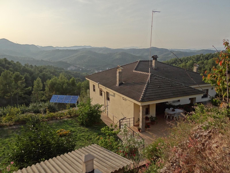 На другом этаже расположена остальная часть жилой площади в 200м2. В светлом зале (50 м2) расположен большой камин и выход на панорамную террасу, с которой открывается изумительный вид на Торреллес и Монсеррат. На этом этаже расположено 6 комнат, одна из которых с собственной ванной комнатой. Остальные спальни делят одну ванную на каждые две комнаты. Просторная кухня обладает также отдельными помещениями для прачечной и сушилки. На этом же уровне находится крытая веранда, сад и зона с выстроенным барбекю. Территория занимает общую площадь в 2,8 гектара. На террасах земельного участка множество культивированных черешен. Вкусовые качества черешни прославили этот регион и являются одним из самых главных земледельческих направлений. Усадьба обеспечена всеми ресурсами. Вода поставляется из собственного источника. Электричество за счёт солнечных панелей и запасного дизельного генератора. Населенный пункт со школами, детским садом, больницами и общественным транспортом на расстоянии около 1 км от усадьбы. Автомагистраль до Барселоны - бесплатная.