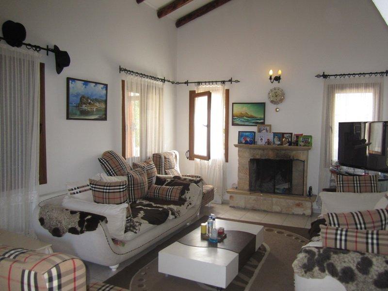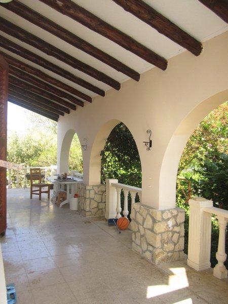 Потолки сделаны в традиционном стиле, украшенные деревянными балками. В саду растут множество деревьев и растений, что делает участок более приватным. Так же в саду находится сарай, сауна, построенная нынешними владельцами, и небольшой гостевой домик с 2 спальнями, где гости могут оставаться на протяжении отдыха.