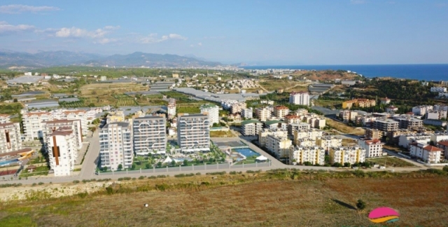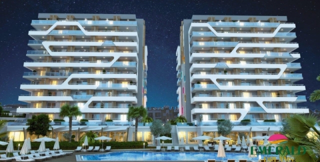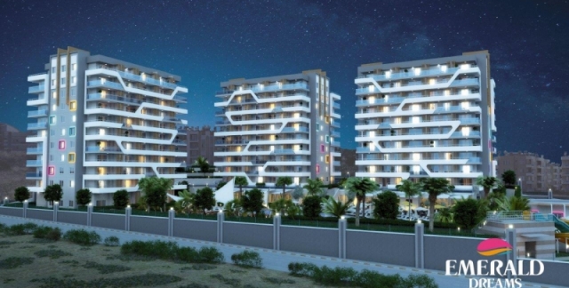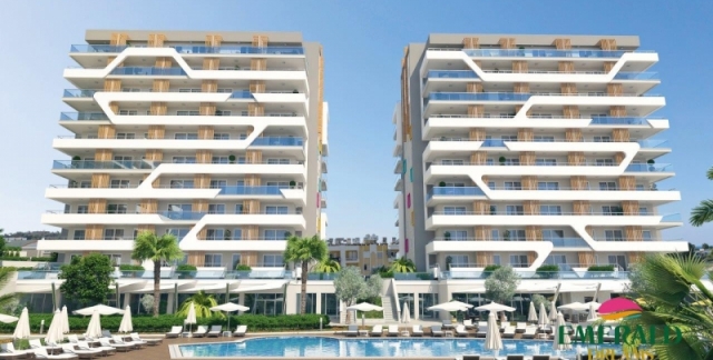 В трех девятиэтажных блоках около 184 квартир с красивым панорамным видом на Средиземное море. Квартиры типа 1+1,2+1, студия, пентхаус и дуплекс.