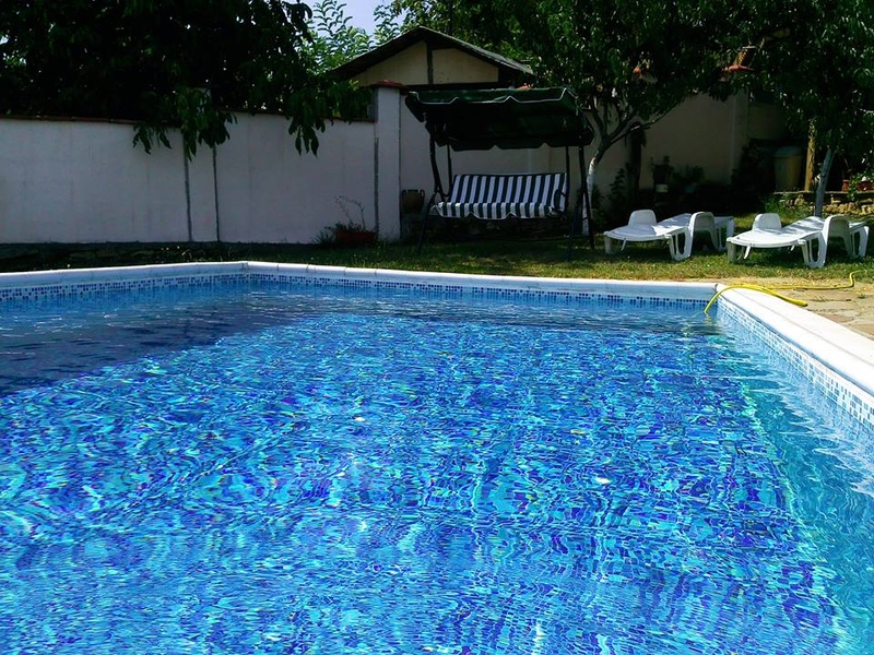 На участке есть бассейн размером 6х5х4 метра, глубина – 1,7 м, фонтанчик, большая крытая зона барбекю со столом и стульями. В саду – фруктовые деревья, в том числе персики, груши.
