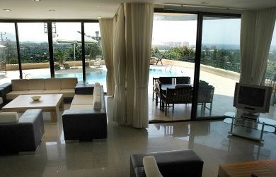 На первом этаже расположены кухня, спальня, салон с большой террасой с выходом к бассейну. На втором этаже вы найдете четыре спальни, три санузла и три больших балкона.,на третьем этаже: две спальни,оборудованная кухня, салон, 2 сан узла, 3 больших террасы с видом на море и горы.