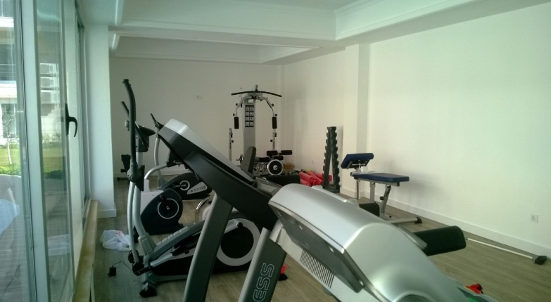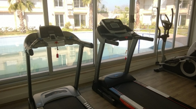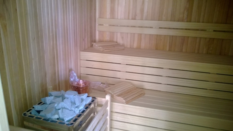- сауна и фитнес-центр с видом на бассейн