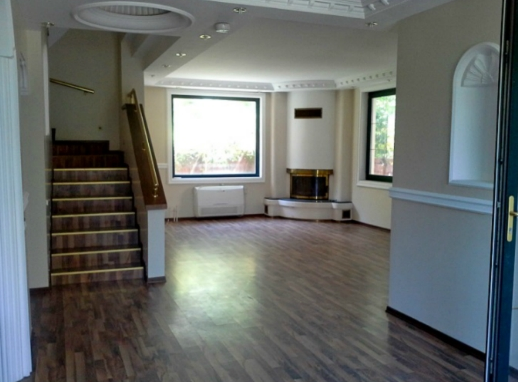 Вилла в 3 этажа, состоит из 8 спальных комнат, 2 салона, салон для занятия спортом, 6 ванных, просторная гостиная на первом этаже с действующим камином, 4 террасы, 4 балкона, на оной их террас установлен зимний мангал, Внешние стены облицованы натуральным камнем из Афиона. Внутренние стены дома и широкие лестницы на этажи выполнены из натурального мрамора.