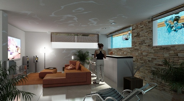 • Подвальная комната для хобби с панорамным окном, выходящим внутрь собственного бассейна (дополнительно)