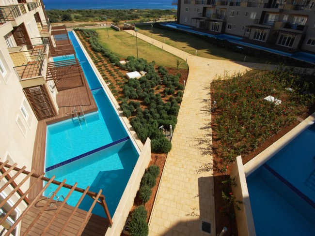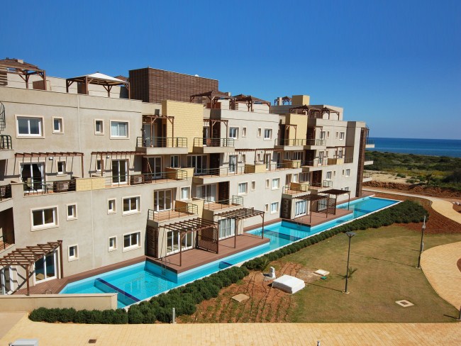 Прямо на берегу Средиземного моря расположился комплекс апартаментов с сопутствующей инфраструктурой. В продаже есть апартаменты разной площади, от студий на 44 кв.м. до 4х комнатных апартаментов на 130 кв.м. Апартаменты предлагаются с дизайнерской отделкой и мебелировкой, в соответствии с проектом. К услугам жителей комплекса: ресторан, тренажерный зал, мини-гольф, частный песчаный пляж и многое другое.