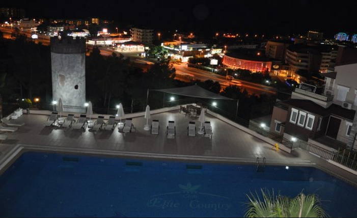 Клуб «Элит Кантри» расположен на небольшом холме, в 150 метрах от моря, откуда открывается великолепная, захватывающая дух, круговая панорама. Прогуливаясь рядом по сосновому бору, любители природы смогут по достоинству оценить все преимущества местонахождения клуба. Недалеко от него раскинулся известный своим поистине уникальным белым песком и пологим входом в воду пляж Инжекума, славящийся кристально чистой водой. Комплекс выполнен по специальному проекту известного в Анталии архитектора, поэтому выбирая именно этот проект, у постояльцев есть возможность насладиться индивидуальностью этого места. В комплексе 12 танхаусов 3-4 этажных. Территория закрыта для посторонних.