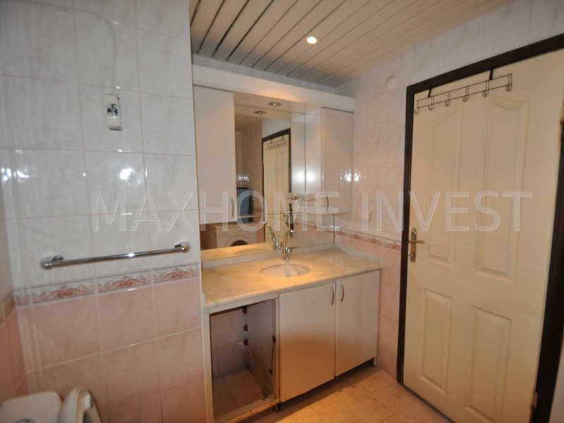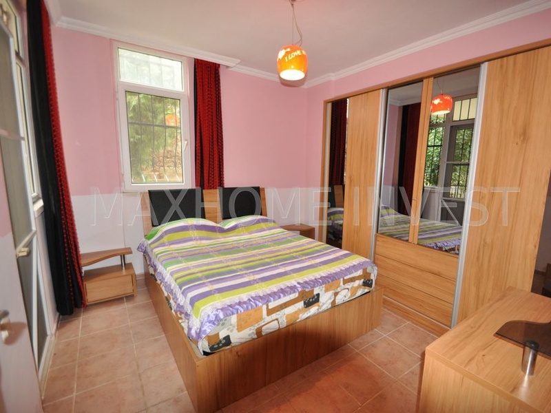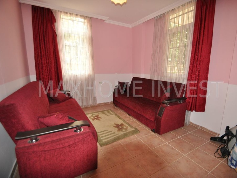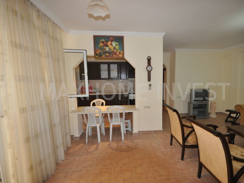 Квартира 2+1, об. площадь 95 кв.м. на первом этаже, две спальни, ванная, дополнительный санузел, выход в сад из гостиной комнаты. На всех окнах установлены решетки. Дом 2004 года постройки, большой сад на огороженной территории дома, бассейн, генератор, консьерж, расстояние до моря 70 метров. В пешей доступности магазины, кафе, рынок и прочая инфраструктура.