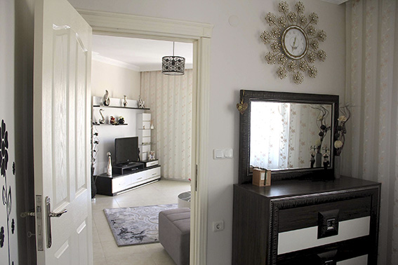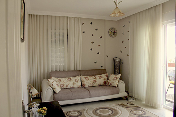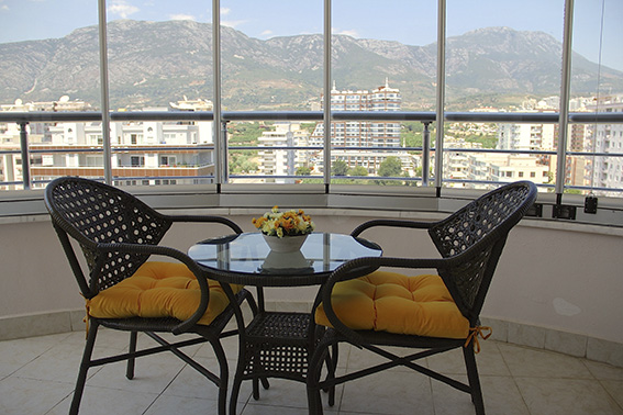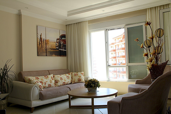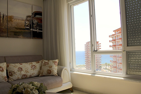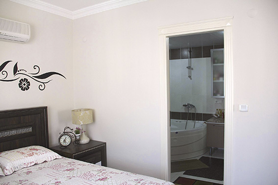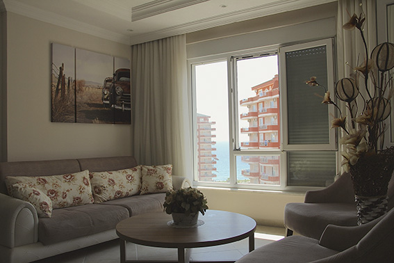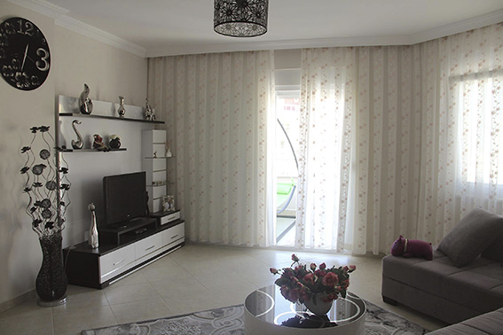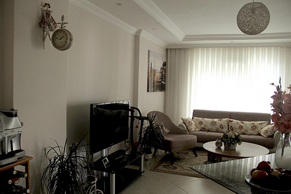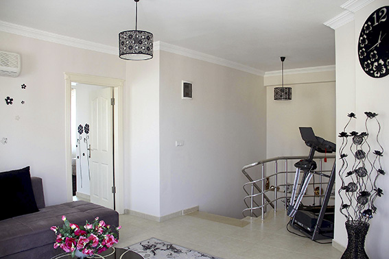 Первый уровень: Гостиная с кухней в американском стиле и огромным балконом с панорамным видом на Средиземное море и горы Торос; 2 спальни ( балкон одной из которых с видом на горы), ванная комната с душевой кабинкой. Оба балкона имеют панорамное остекление тонированным сборным стеклопакетом.
