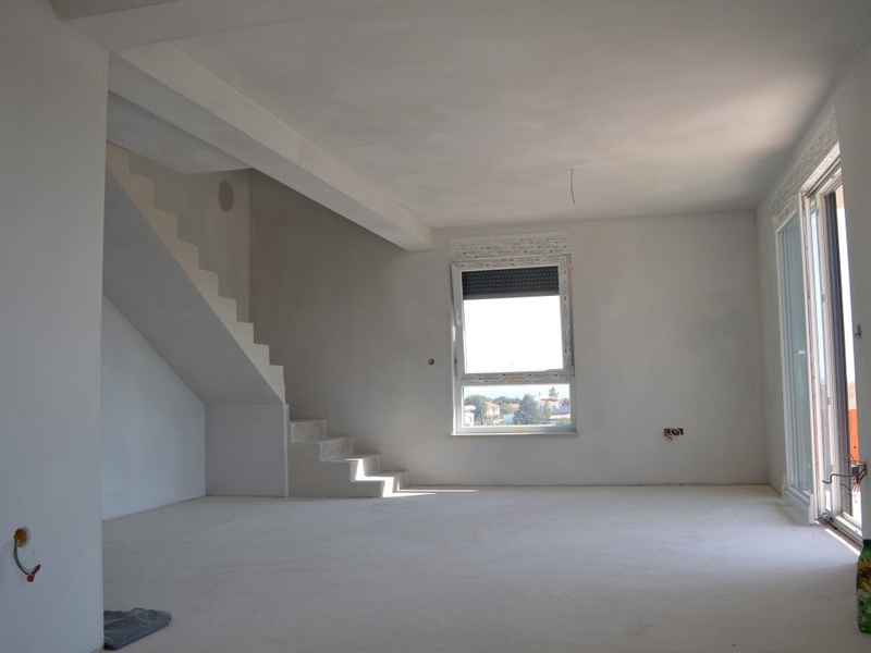 Внутренние ступеньки ведут на верхний этаж- где расположены две спальные комнаты и две большие террасы с отличным видом на море и целый Медулин.
