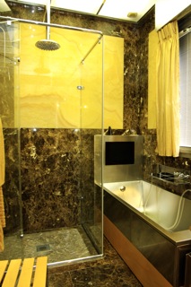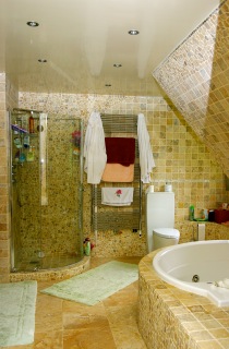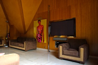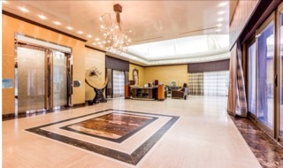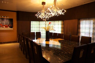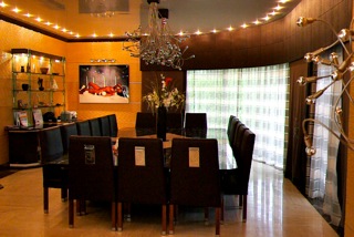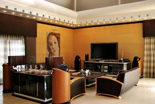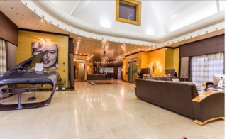Оно имеет три уровня, 5 огромных роскошных спален и 2 сада (японский и французский). На первом этаже расположены гостиная, общая комната, столовая, кухня, библиотека и главная спальня (с двумя отдельными ванными и двумя гардеробными). На втором этаже находятся остальные 4 спальни (одна большаяспальня для ребёнка оформлена в стиле Диснейленд, на стенах нарисованы всесамые известные персонажи, в комнате естькровать принцессы, гардеробная и ванная с джакузи), вкаждой из трёх стандартных спальных комнат имеетсяпространство для гардероба и своя ванная комната с душем/джакузи, одна комната для прислуги и один кабинет. На нижнем уровне находится кинозал, игровая комната (бар и бильярдные столы), огромный бассейн (крытый бассейн с сауной, хаммамом и звуковой системой), и гараж на 5 больших автомобилей.