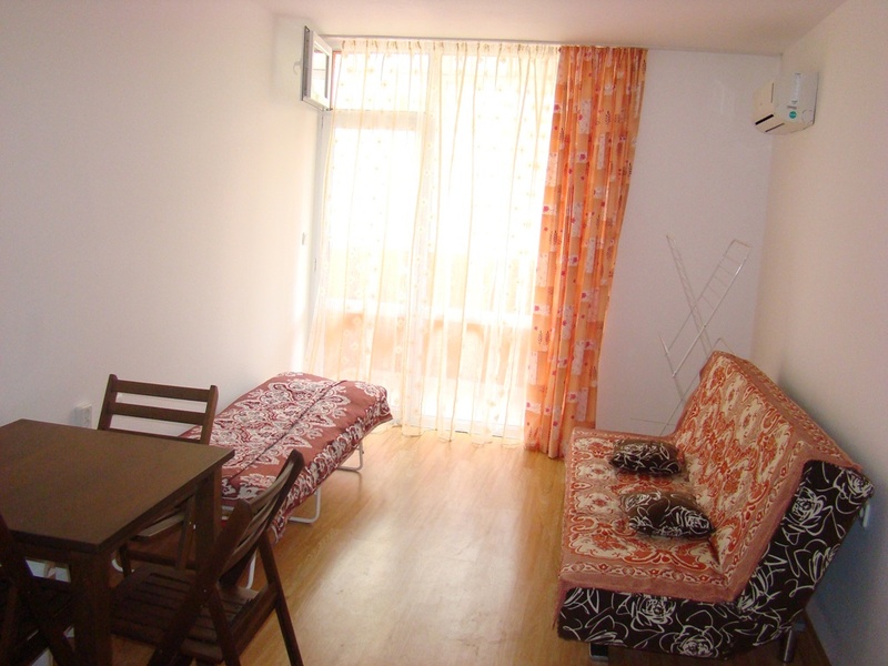 Предлагаем вашему вниманию меблированную студию в комплексе „Гербер-3”, Солнечный Берег. В квартире етсь все необходимое для вашего отдыха или же постоянного проживания. Установлен кондиционер с сплит системой тепло/холод. Планировка: гостиная с кухней, застекленный балкон, санузел с ванной. Площадь – 31 кв. м. Этаж – 1. Aкт 16 В комплексе: бассейн, детская площадка, ресепшн, охраняемая парковка, красивый зеленый и спокойный район. Такса за охрану и обслуживание – 10 евро/м2. Без комиссии с покупателя!