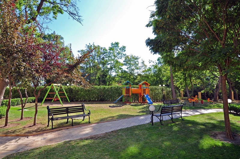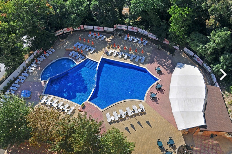 Расположение: Комплекс находится в тихой и хорошо озелененной части Золотых Песков, в 550 м до центра курорта и пляжа, в 50 м от автобусной остановки (там останавливается регулярный транспорт, курсирующий до Варны). Известный морской курорт Болгарии – Золотые Пески находится на морском побережье недалеко от центра города Варны. "Золотые Пески" известны своими красивыми и просторными пляжами, покрытыми мелким песком золотистого цвета, а также развлечениями различного типа. Место уникально своей природой – сочетание зеленых склон гор и прекрасные золотые пляжи, которые и дали название курорту. Природные условия подходят для купания, занятий серфингом, катания на водных лыжах и для многих других развлечений.