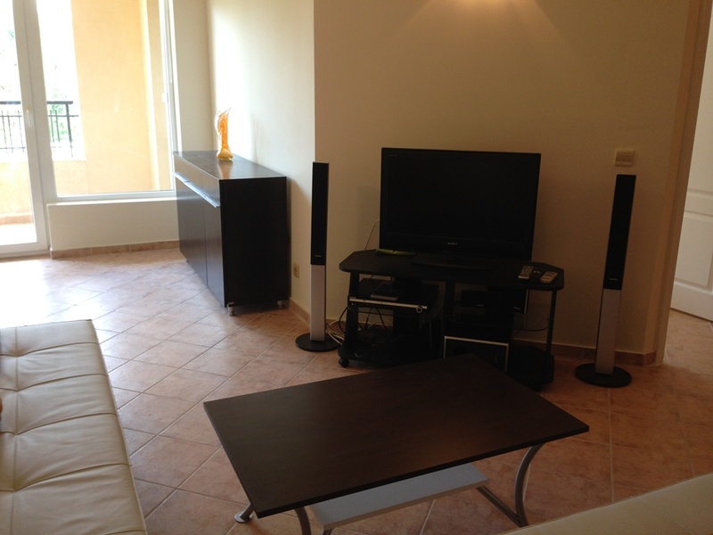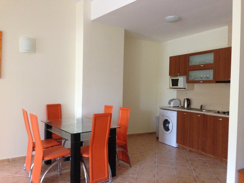 Описание и интерьер: Апартамент расположен на втором этаже и состоит из прихожей, гостиной с кухней, двух спален, ванной комнаты с туалетом, балкона с видом на бассейн и парковую зону.