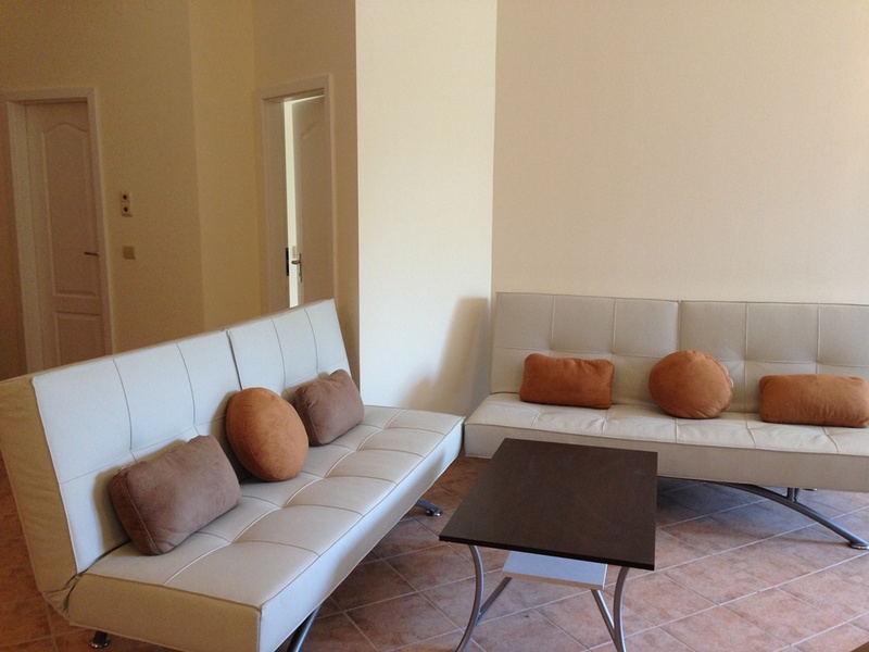 Диваны в гостиной раскладываются, что дает возможность их использования в качестве 4 дополнительных спальных мест. Квартира очень светлая, так как окна большие и выходят на солнечную южную сторону.