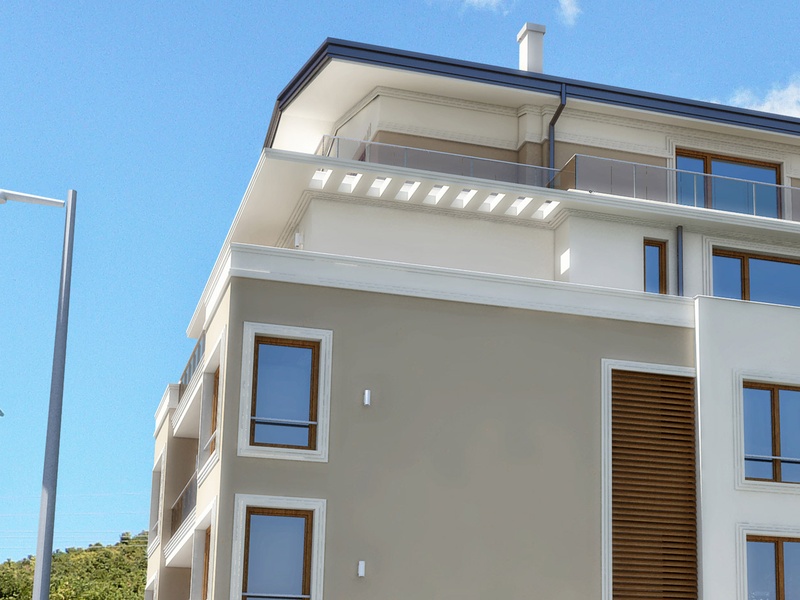 Из окон открывается прекрасный вид на море и лес.На территории комплекса разработан ландшафтный дизайн, предусмотрено садовое освещение и террасa с общей зонoй отдыха на первом этаже. Там же будут располагаться сауна и душ.