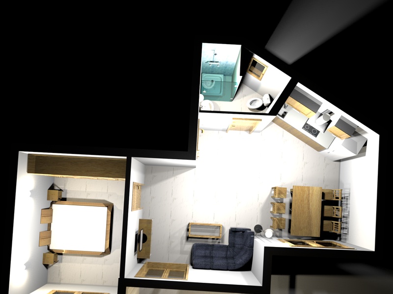 — Гостиная: пол — керамогранит, стены и потолок – краска;
