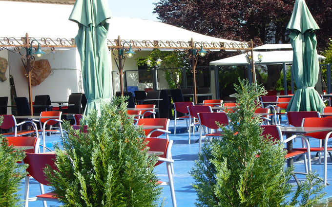 Большая терраса с видом на реку Драва () и с фантастическим видом на горы (более 140 мест)